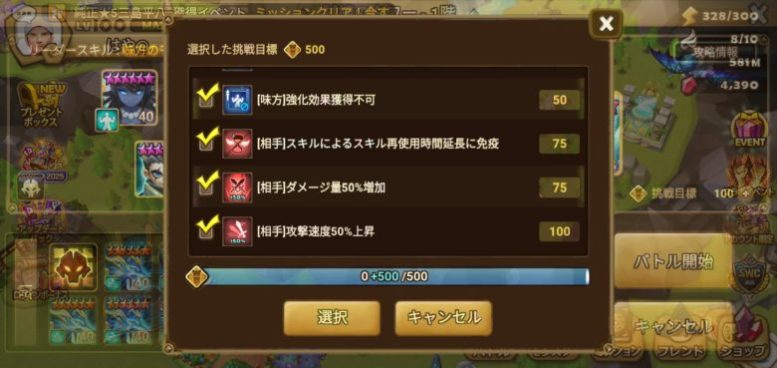挑戦目標が細かく(敵・味方別)設定できるように。